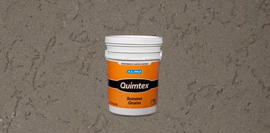 El Quimtex Romano Grueso es un revestimiento plástico continuo, conformado por cargas minerales y emulsiones acrílicas que, sinergizadas, dan un sistema revestido de alta resistencia al interperismo y a todo tipo de agresiones atmosféricas. Este revestimiento posee, además, gran resistencia mecánica, flexibilidad para formar las microfisuras: excelente adherencia y buena resistencia química. Previamente hay que agregar cuarzo base para homogeneizar la absorción y el color de la superficie aparte de mejorar el anclaje, el rendimiento y la performance del revestimiento aplicado.
